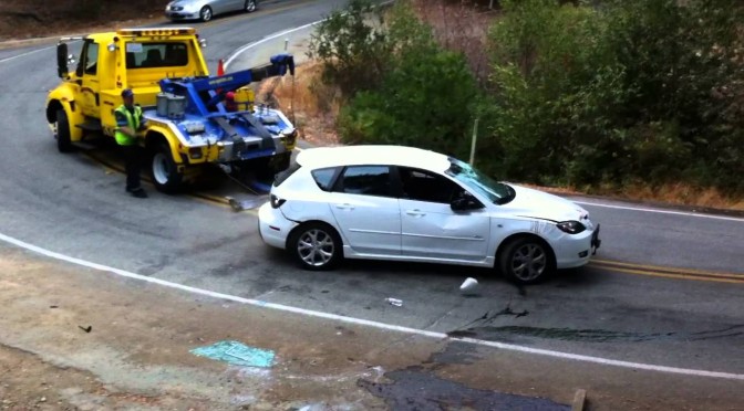 Um carro sofre acidente numa ladeira em curva. O socorro é chamado para desvirar o carro e faz um fenomenal resgate. Já que o carro já deu PT mesmo, por que não apenas liberar a pista… #FAIL